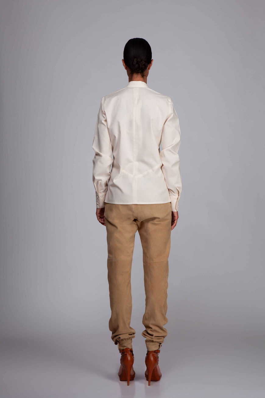 Chemisier crème, pur coton, doux, à col Mao. Une chemise couture, ample et confortable. Les poignets élégants ont une finition à double boutonnage.